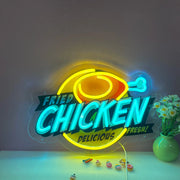 Fried Chicken Led Neon Sign Acrylic Sign Wall Art Decor Fast Food Restaurant Kitchen Business Shop Sign Dimmable Print Neon