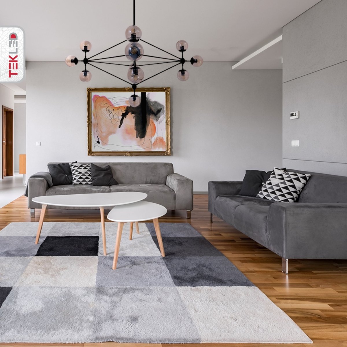 Molecule Shape Black Rod Metal Amber Glass Globe Chandelier Ceiling Light Introducing the modern and stylish TEKLED Glass Globe Pendant...