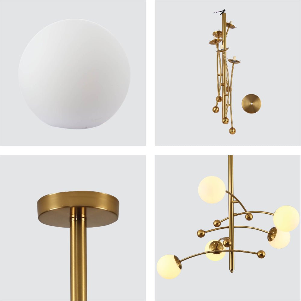Mace Opal Globe Glasses Gold Metal Sputnik Chandelier Ceiling Light 5xG9 Fittings
