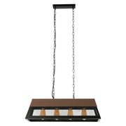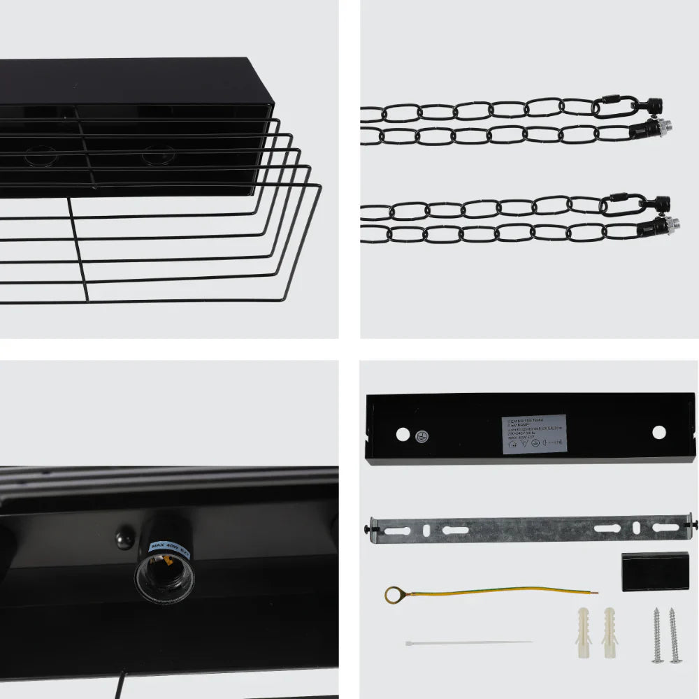 Suspended by two robust chains, these lights provide stability and add to the industrial aesthetic. Designed to accommodate four downward-facing lamp holders, they promise ample illumination over workspaces or social areas.