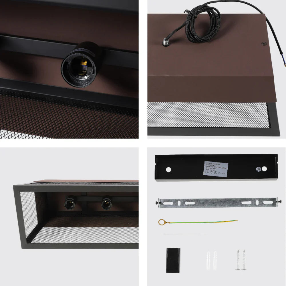 This fixture features a warm brown top that seamlessly transitions into a striking black mesh on the bottom. The combination creates an inviting diffusion of light, perfect for highlighting kitchen islands or dining areas with a touch of industrial charm.