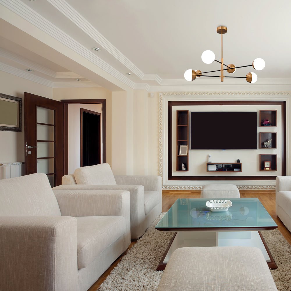 White Glass Gold Metal Globe Sputnik Ceiling Light Tiered Nordic Kitchen Island Chandelier 6xG9 Fitting