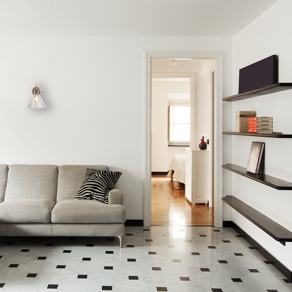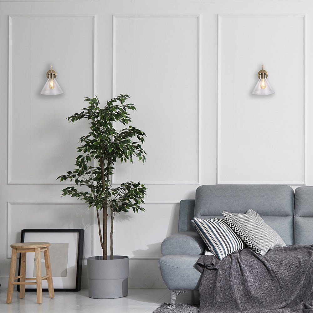 Glass is becoming the trendiest material in lamp designs, as it brings a sense of sophistication and reminds one of lamps used in erstwhile palaces. The Antique Brass Metal Clear Glass Funnel Wall Light with E27 Fitting, with its stunning glass funnel shape will look mesmerising in your spaces, be it bedrooms, living rooms, cafes, restaurants, lobbies, porches, dining rooms, bathrooms, or balconies. Its glass shade ensures that it spreads ambient light in the entire room. It is a versatile piece that can be paired with either yellow or white bulb. The lamp will give off warm, cool white light depending on the bulb used. Warm lighting feels natural in the evenings and promotes relaxation. Warm, or soft white, light, is especially appropriate for cosy living spaces where we want to relax and be comfortable whereas, cool lighting is perfect for kitchens, bathrooms, study rooms and for retail spaces. They're very popular in utility rooms, bathrooms, warehouses, workshops, offices, and other work environments. This wall light is compatible with dimmer switches, but the bulb is not included in the package. Make sure to add an E27 bulb to your cart when ordering.