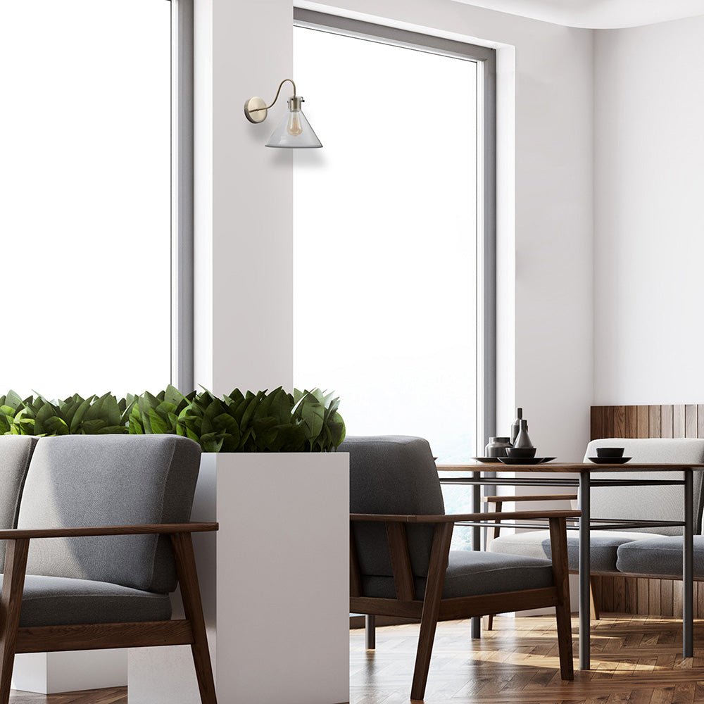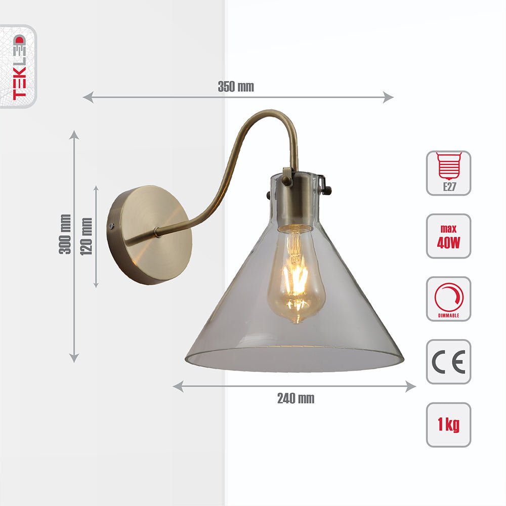 Antique Brass Metal Clear Glass Funnel Wall Light with E27 Fitting |