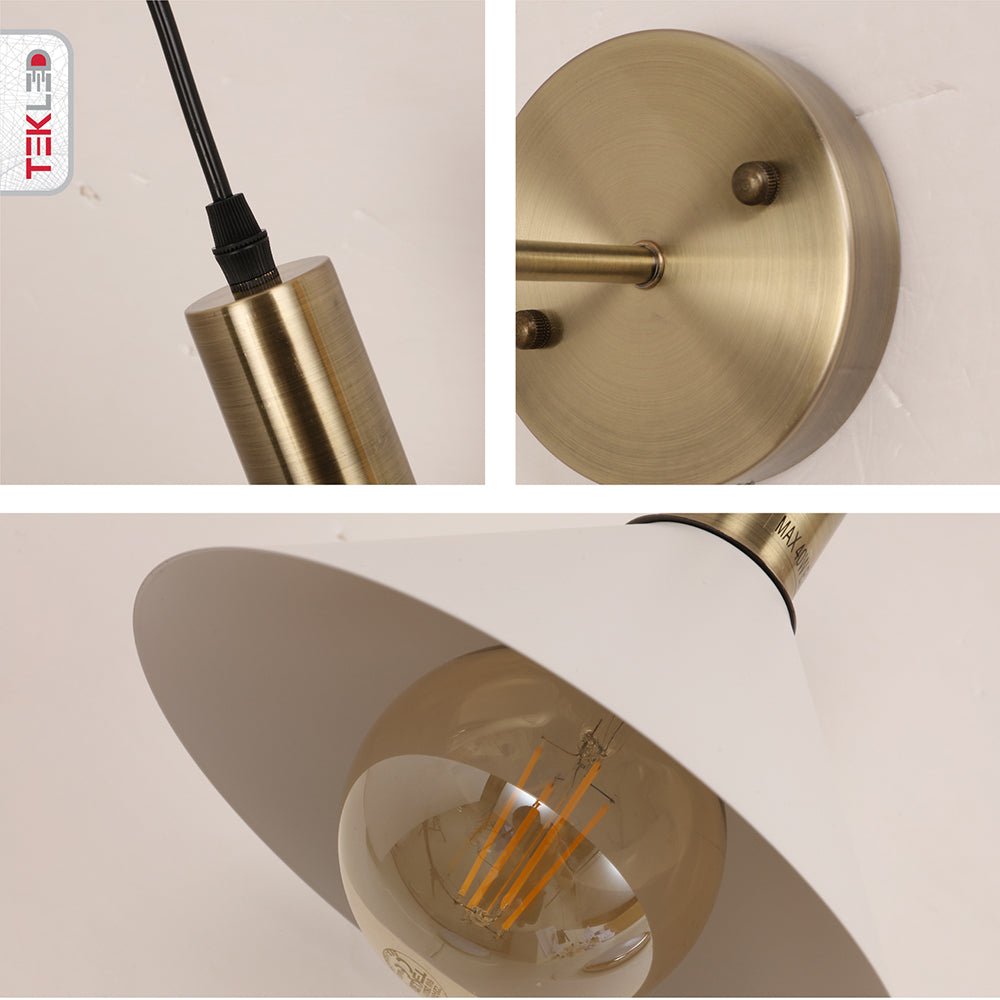 The Antique Brass Metal White Black Cone Suspended Wall Light with E27 Fitting is a combination of retro and modern-day designs. Choose it as a bedside lamp for your bedrooms. With its sleek and smooth finishing, it will also suit kids rooms, study rooms, lobbies, and reception areas where light is focussed on wall art, photographs, or shelf items. It will look equally perfect in cafes and restaurants. It is available in white and black colour variants. Pair it with a warm or yellow toned bulb to enhance its metallic shade. Warm lighting feels natural in the evenings and promotes relaxation. Warm, or soft white, light, is especially appropriate for cosy living spaces where we want to relax and be comfortable. This wall light is compatible with dimmer switches, but the bulb is not included in the package. Make sure to add an E27 bulb to your cart when ordering.