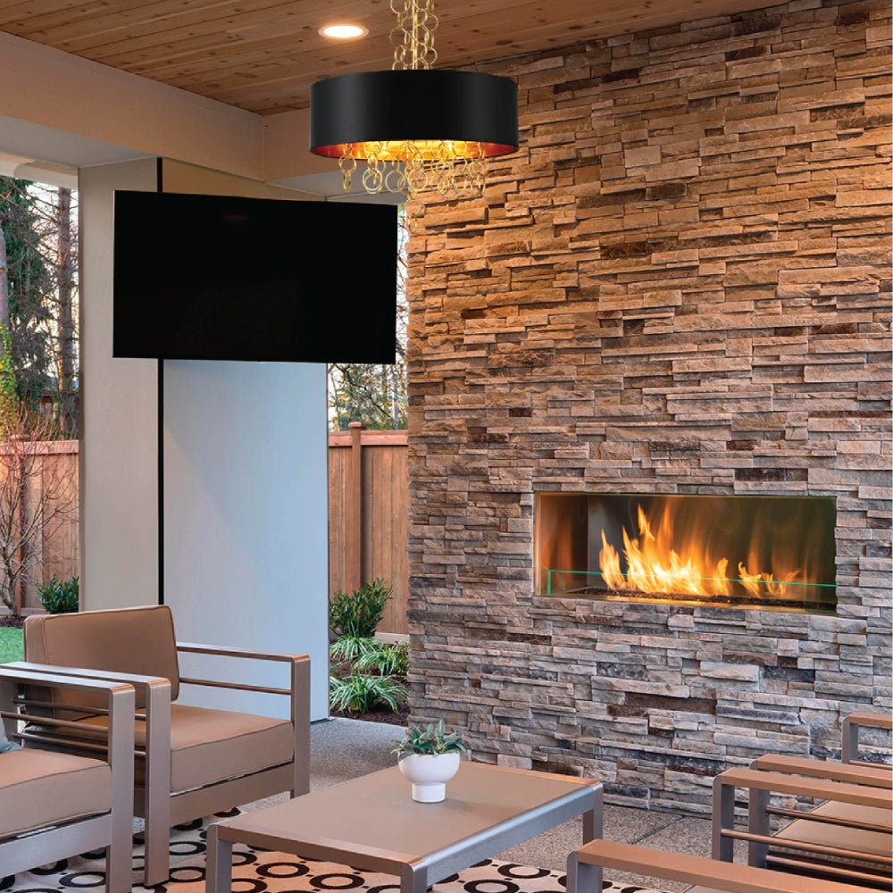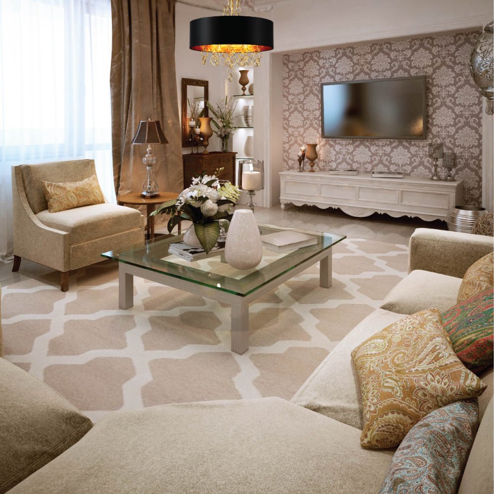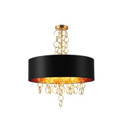 Black Copper Fabric Drum Shade Gold Ring Chandelier Ceiling Light