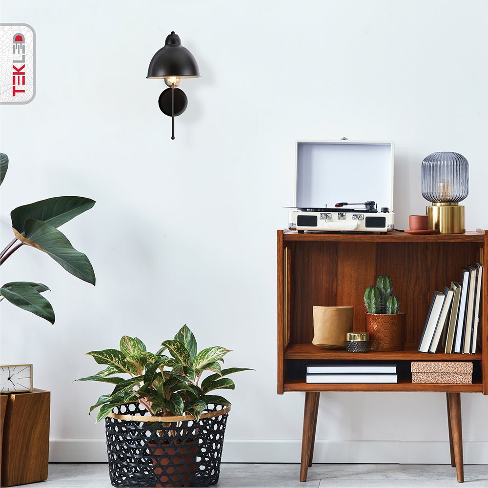 Snowdrop Metal Dome Wall Light E27 Fitting - Black