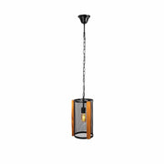 Black Metal Wood Cylinder Cage Pendant Ceiling Light E27 - D210 mm - 1 Lamp