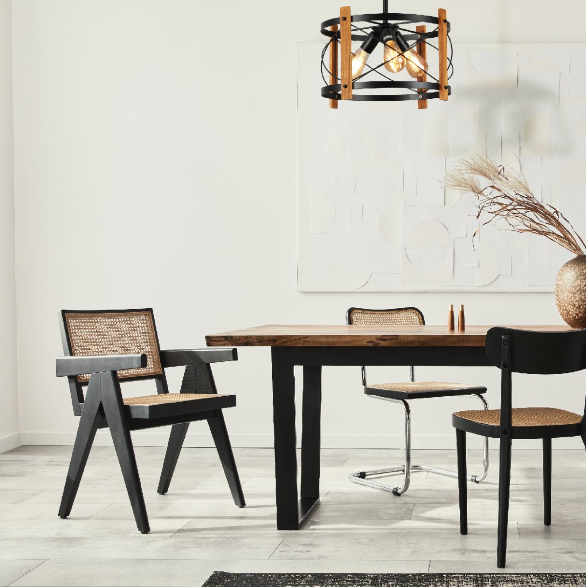 Caged Candle Industrial Retro Round Pendant Ceiling Light 3xE27 Wood Black Finishing