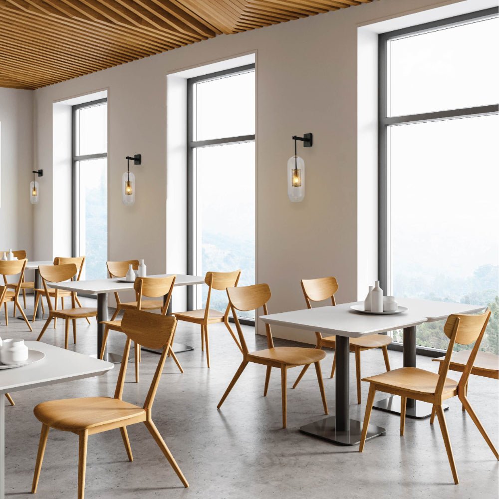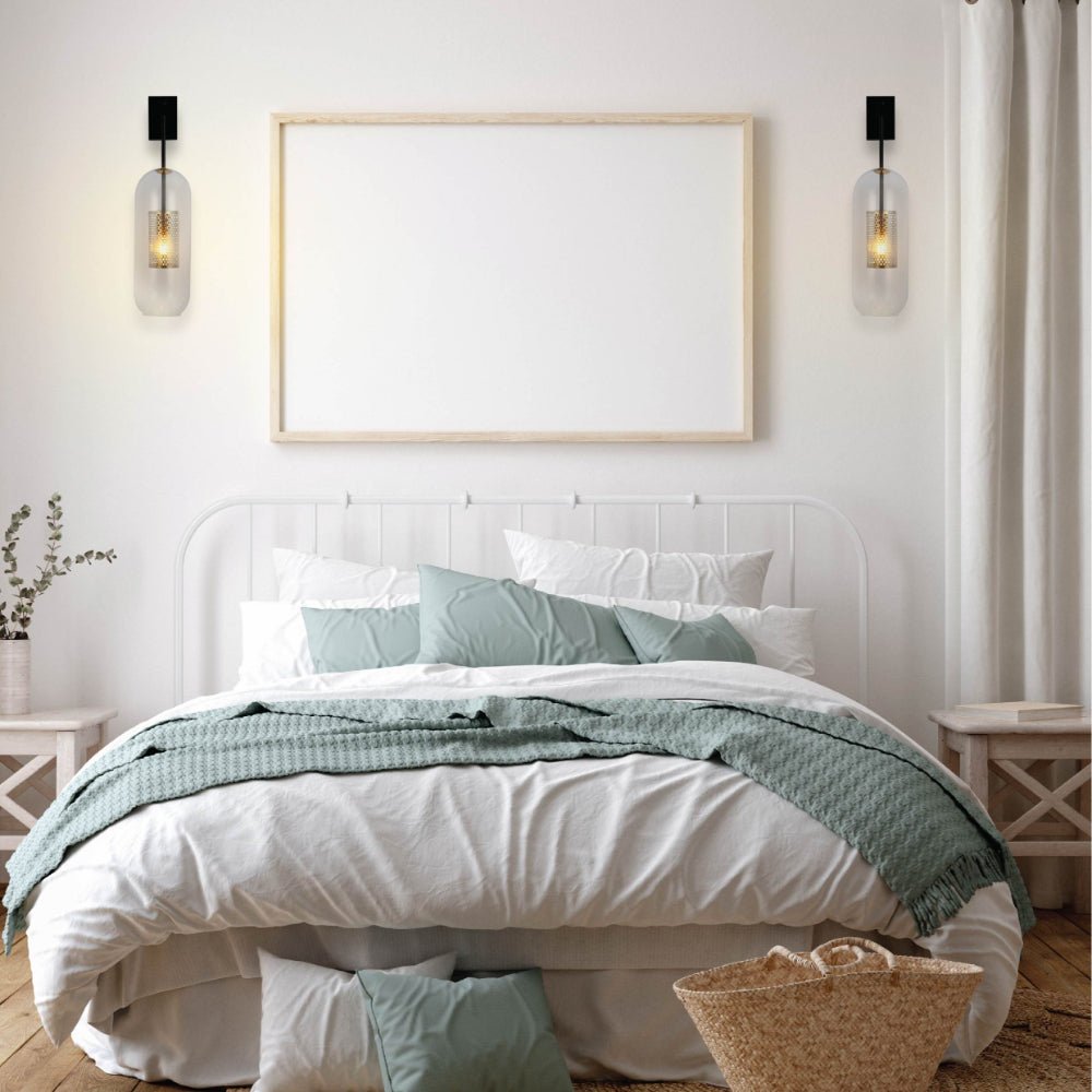 Sporting a golden cage inside a capsule, the Clear Cylinder Glass Gold Cage Black Body Wall Light with E27 Fitting will flood your bedrooms, living rooms, porches, balconies, bathrooms, corridors, as well as cafes, restaurants, reception areas, and bars with warm ambient light. Place it in multiples over kitchen islands or dining tables. Pair it with a warm or yellow toned light to bring out the sheen of the glass shade. Warm lighting feels natural in the evenings and promotes relaxation. Warm, or soft white, light, is especially appropriate for cosy living spaces where we want to relax and be comfortable. This modern and eclectic wall light is compatible with dimmer switches, but the bulb is not included in the package. Make sure to add an E27 bulb to your cart when ordering.