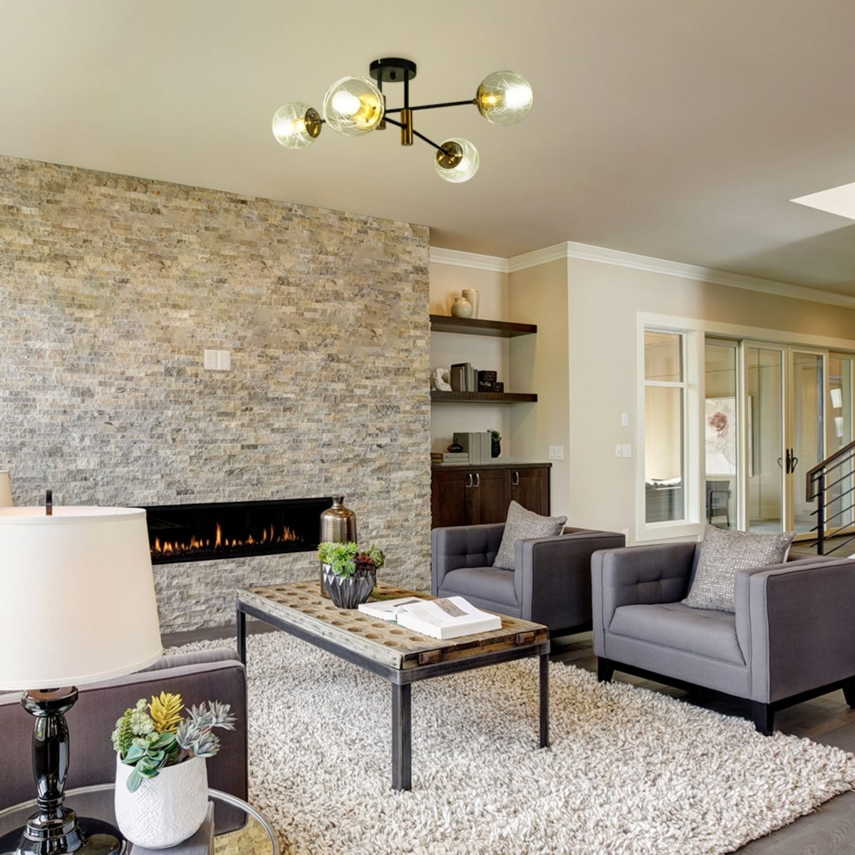 TEKLED brings to you the Opal Clear Amber Glass Globe Gold and Black Metal Semi Flush Ceiling Light E27 - a modern and contemporary light piece that will cheer up your spaces and flood it with ambient light with its light globes facing different directions. Use it in living rooms, dining rooms, kitchens, bedrooms, bathrooms, as well as in large halls, reception areas, lounges, waiting rooms, cafes, restaurants, and bars. Pair a warm yellow toned bulb to bring out the striking colour of the globes. Warm lighting feels natural in the evenings and promotes relaxation. Warm, or soft white, light, is especially appropriate for cosy living spaces where we want to relax and be comfortable. You can also pair it with a cool, white light bulb if you prefer your spaces brighter. Cool lighting is perfect for kitchens, bathrooms, study rooms and for retail spaces. They're very popular in utility rooms, bathrooms, warehouses, workshops, offices, and other work environments. The lamp will give off warm, or cool white light depending on the bulb used. It is available in 6 variants: The 4 lamp size variant is available in Amber, Clear, and Opal colours and the same three colours are also in the 6 Lamp variant. This gorgeous ceiling light is compatible with dimmer switches, but bulbs are not included in the package. Make sure to add four (or six, depending on the variant chosen) E27 bulbs to your cart when ordering.