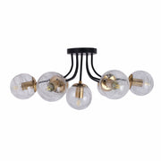 Clear Globe Glass Black Metal Semi Flush Ceiling Light E27