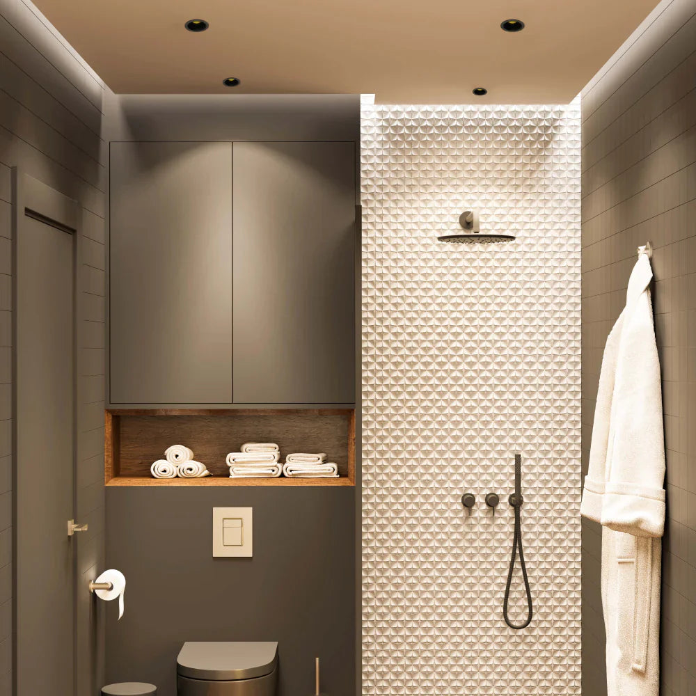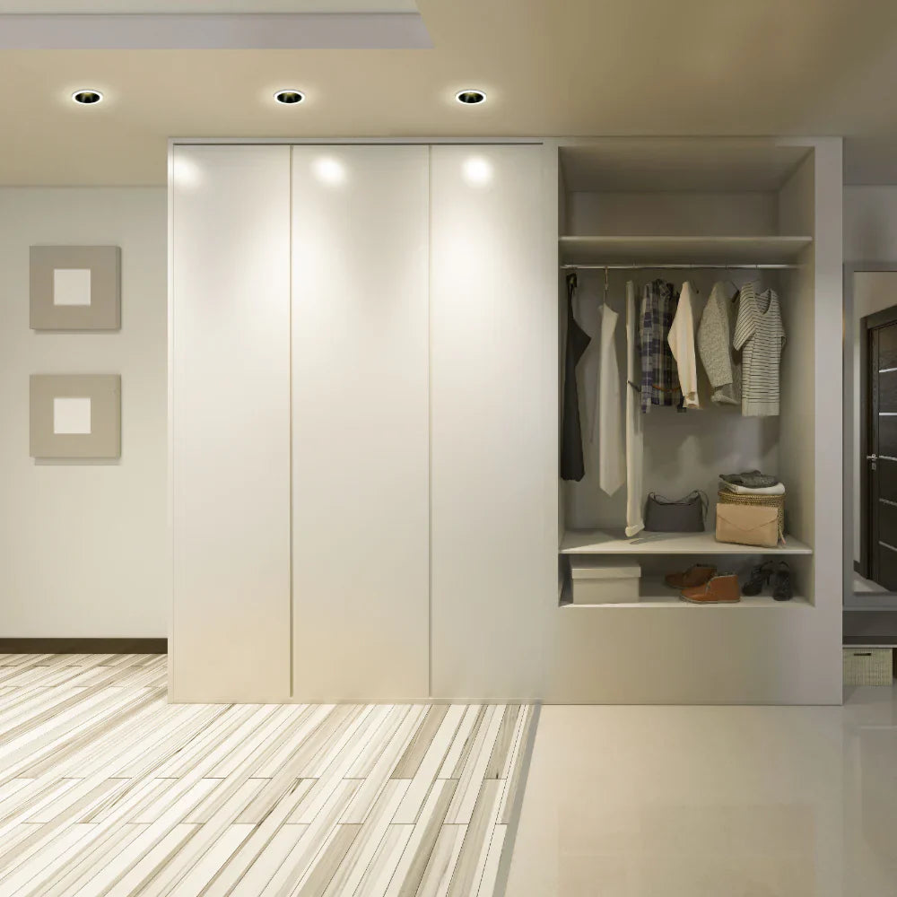 The TEKLED Chic Recessed COB LED Downlight brings both elegance and efficiency to your lighting. Offered in three finishes and two CCT options, this versatile downlight can tilt to highlight artworks or architectural details, making it an ideal choice for various settings from contemporary living rooms to professional galleries.