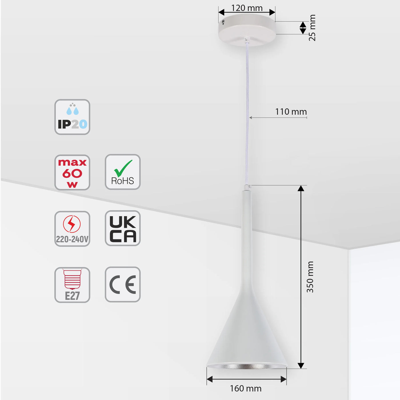 Funnel Nordic Modern Metal Ceiling Pendant Light E27 Fitting - White