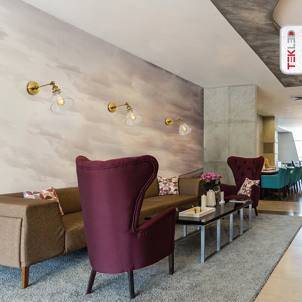 Enhance your home or business with the Vintage Brass Wall Light, a perfect blend of classic design and modern functionality. Its versatile applications and elegant design make it an ideal choice for any room in your home, from the living room to the bathroom, or even commercial spaces like restaurants and cafes. The clear glass shade and brass finish offer a sophisticated look that complements a variety of decor styles, while the hinged design allows for directional lighting to suit your needs.