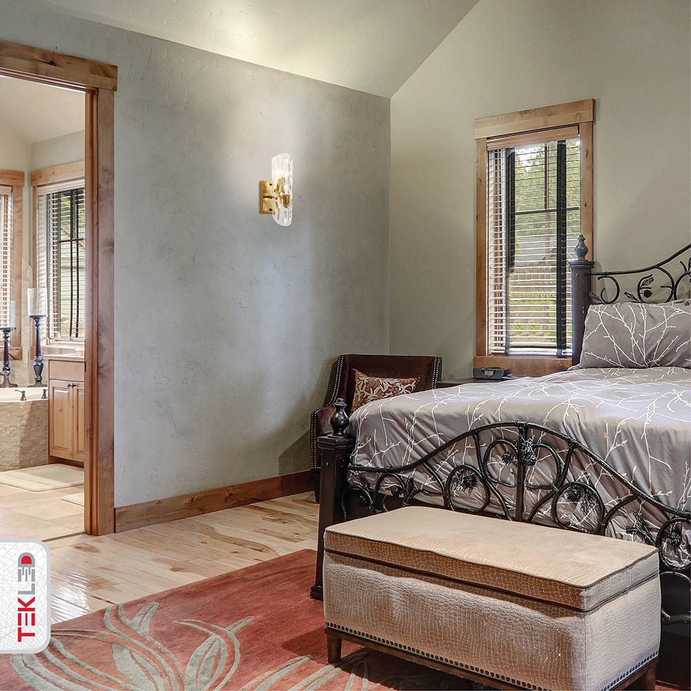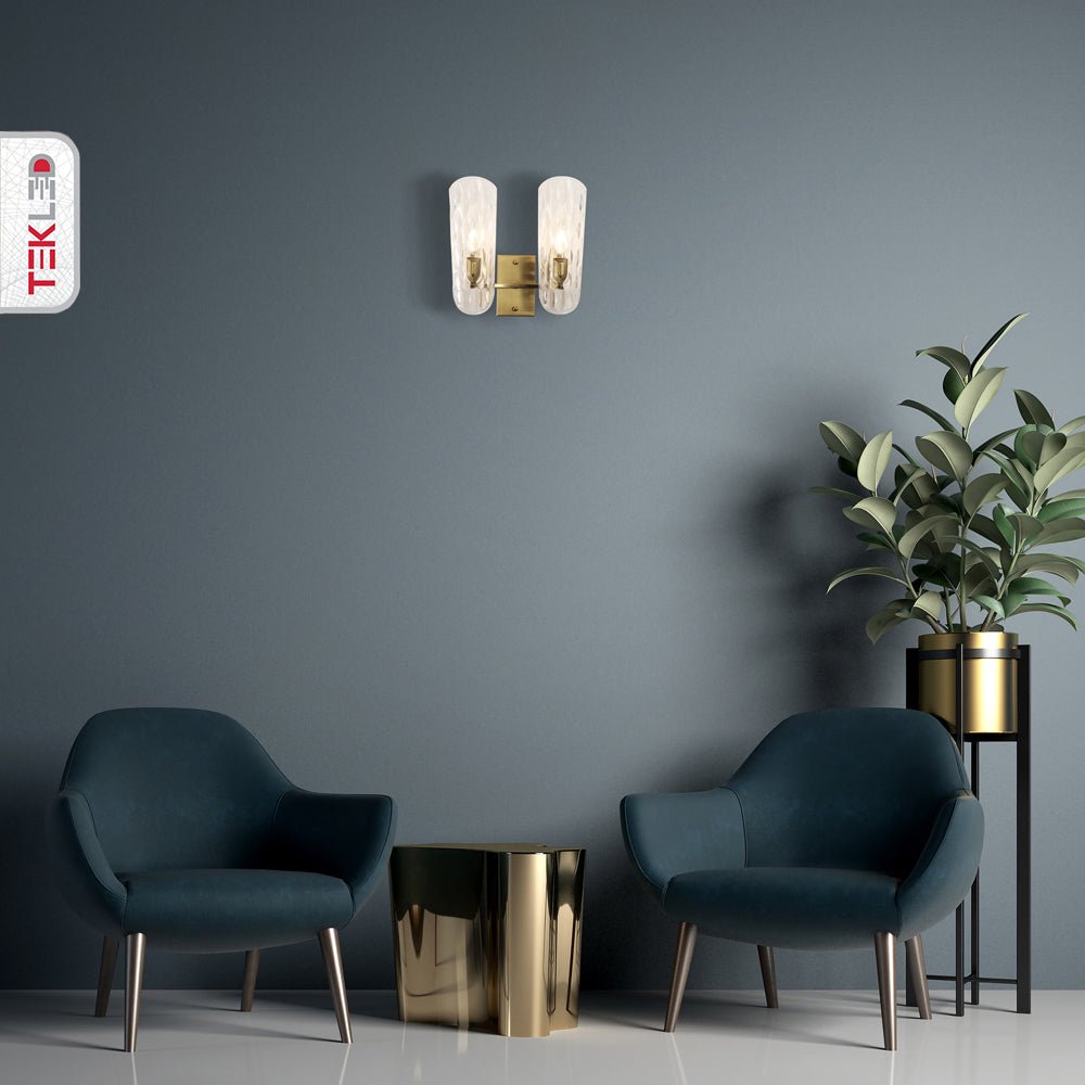 Introducing the Elegant Brushed Brass Wall Light, a sophisticated lighting fixture that combines timeless design with modern elegance. This wall light features a beautifully crafted brushed brass base and a uniquely textured glass shade that diffuses light gracefully, creating a warm and inviting ambiance in any room. Available in both single and double light options, this fixture is perfect for adding a touch of luxury and style to your home.