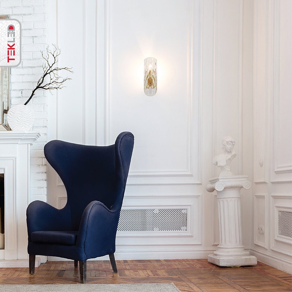 The glass shade's unique pattern creates a stunning visual effect when illuminated, adding depth and character to your interior d©cor. The high-quality materials and exquisite craftsmanship ensure that this wall light will be a lasting addition to your home, providing both beauty and functionality.
