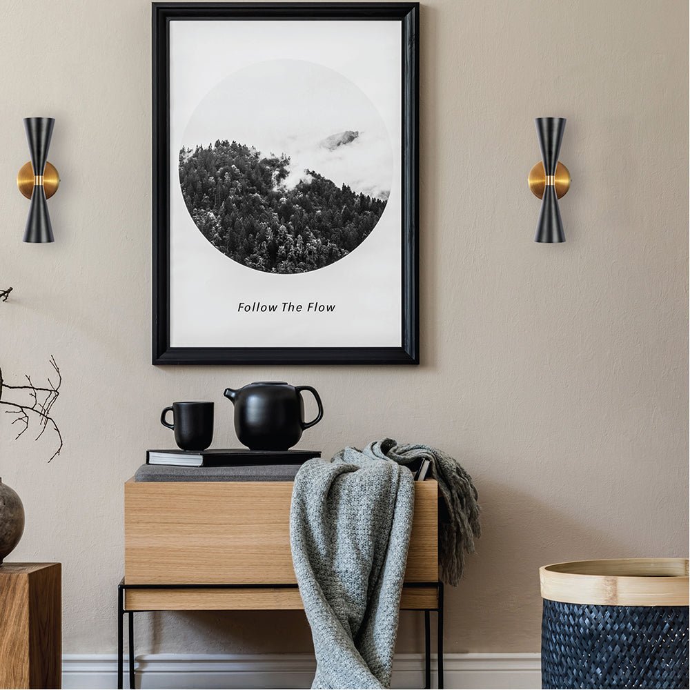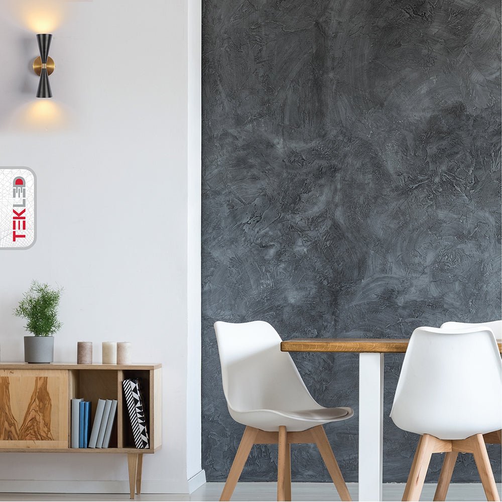 A perfect fit for modern and urbane styled spaces, the Gold Aluminium Metal Body Black Cone Wall Light with 2xE27 Fitting is an awe-inspiring piece. Its clean and symmetrical design with 2 bulbs, 1 each facing up and down, will lighten the rooms in the ambient lighting. The black and gold coloured bow shape of the light looks glamorous and will work well in living rooms, dining rooms, kitchens, bedrooms, bathrooms, cafes, restaurants, meeting rooms, halls, and even corridors. The light fitting can be placed to highlight a photograph, painting, or knick-knacks on the wall or shelves. The lamp will give off warm, cool white light depending on the bulb used. Warm lighting feels natural in the evenings and promotes relaxation. Warm, or soft white, light, is especially appropriate for cosy living spaces where we want to relax and be comfortable whereas, cool lighting is perfect for kitchens, bathrooms, study rooms and for retail spaces. They're very popular in utility rooms, bathrooms, warehouses, workshops, offices, and other work environments. This wall light is compatible with dimmer switches, but the bulbs are not included in the package. Make sure to add two E27 bulbs to your cart when ordering.