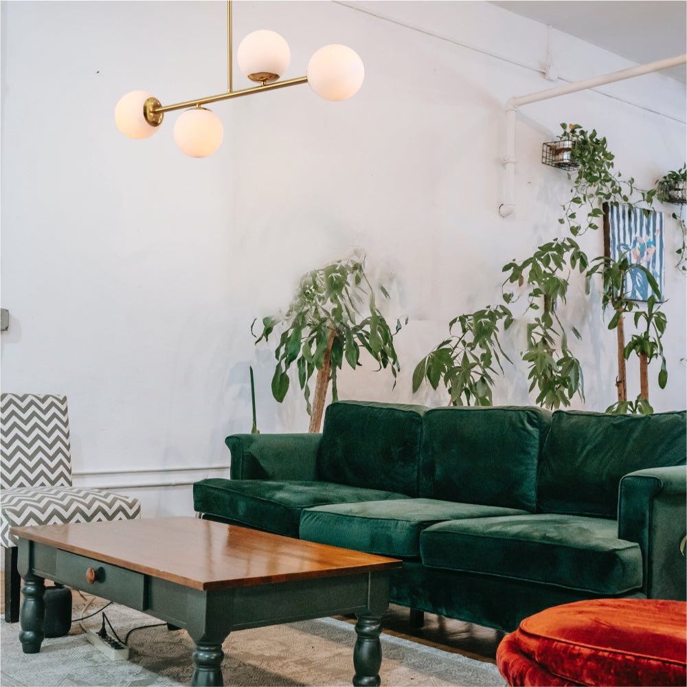 Gold Metal Body Opal Glass Globes Ceiling Light 4xE27 Fittings Elegantly designed, the new Gold Metal Body Opal Glass Globes...