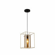Gold Metal Cage Amber Cylinder Glass Pendant or Island Ceiling Light E27 Fitting - Single