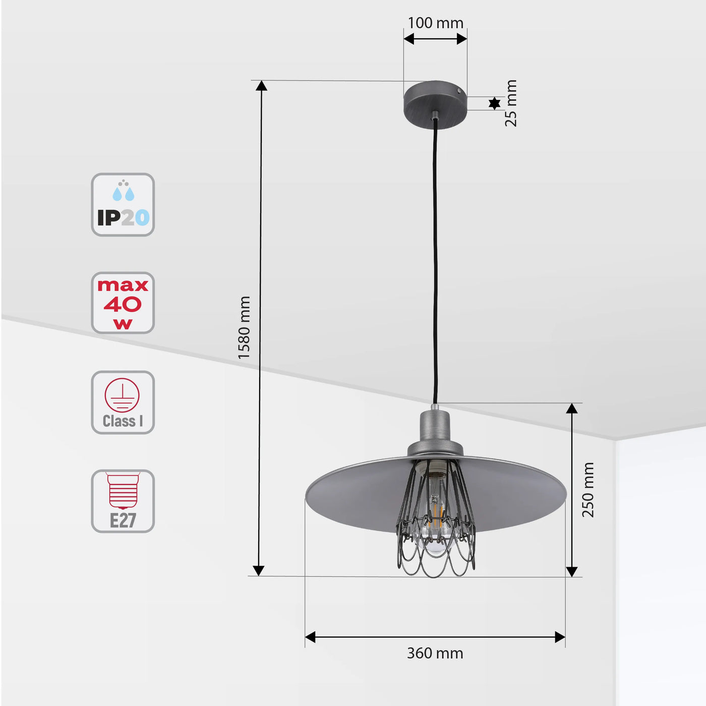 Grey Wire Cage Industrial Vintage Style Pendant Light E27