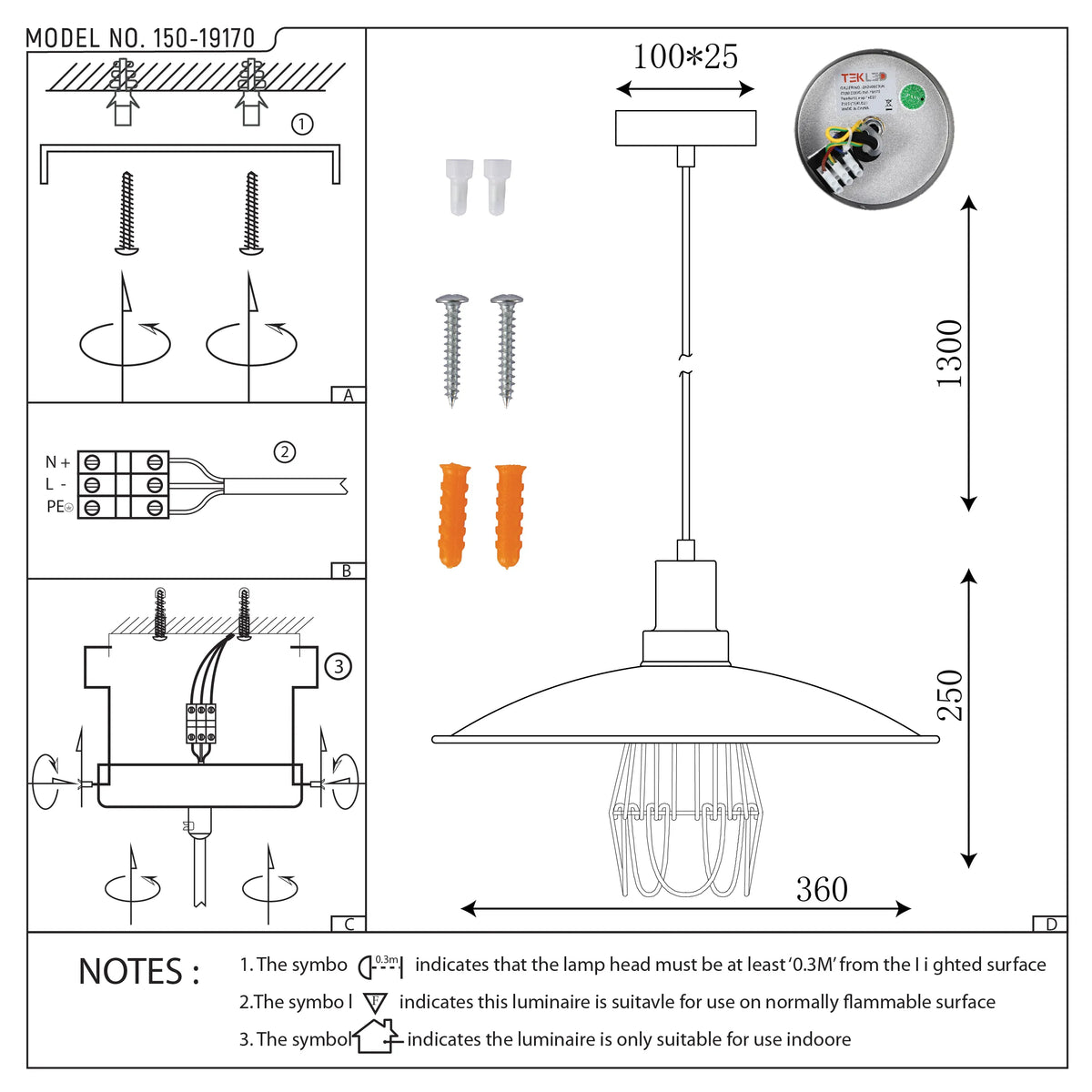 Bulb Type: Compatible with E27 bulbs (bulb not included).