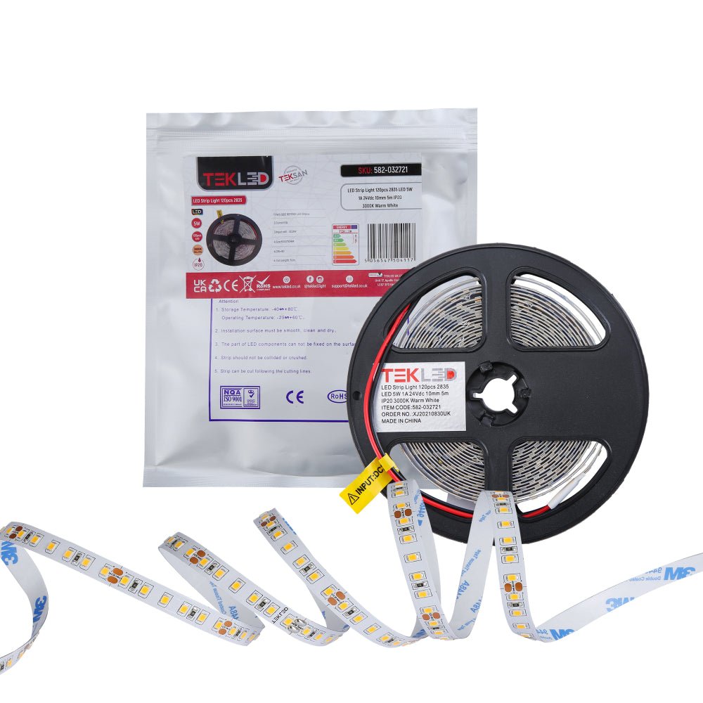 LED Strip Light 120pcs 2835 LED 5W 1A 24Vdc 10mm 5m IP20 - 3000K Warm White