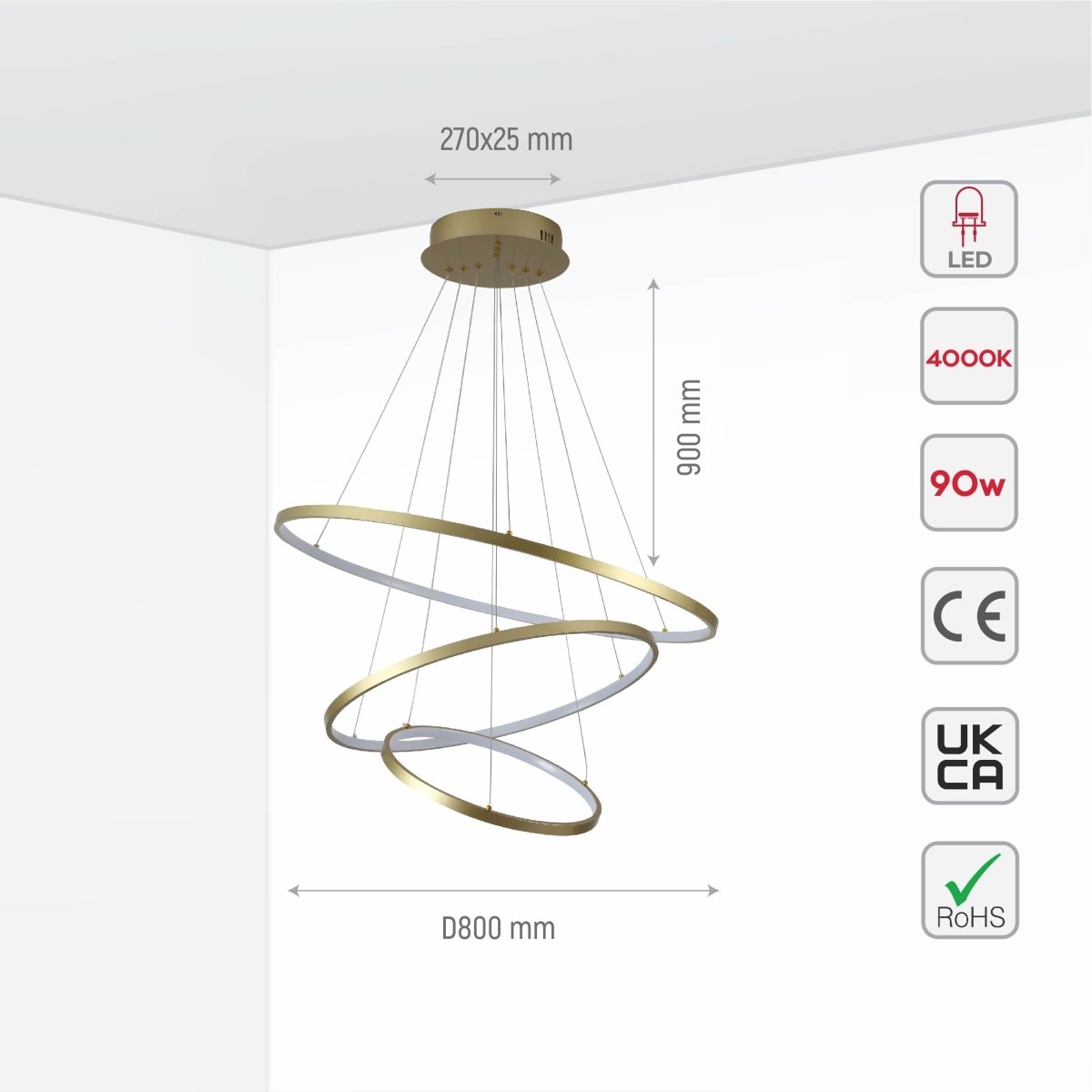 LED Triple Circle Gold Finishing 4000K Natural Cool White Modern Contemporary Nordic Scandinavian Pendant Ceiling LightThis modern Contemporary Nordic Scandinavian...
