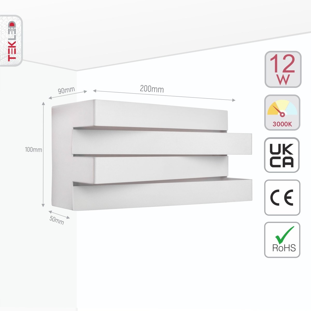 Integrated LED Metal Wall Light 12W Warm White 3000K - White