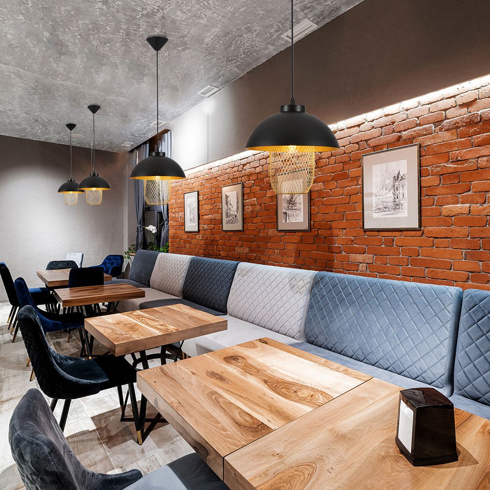 Bring back the glitter of gold with the Matte Gold Caged Shade with Black Dome Top Pendant Ceiling Light with E27 Fitting. Pick from in three size variants of diameter 290 mm, 340 mm, and 390 mm for your living rooms, bedrooms, dining rooms, balconies, or corridors. It enhances rooms that are coloured or wallpapered with light or pastel colours, especially ones where an accent of gold is used. Integrate it in multiples in cafes, restaurants, and bars and pair it with a yellow or warm toned bulb for the best effect. Warm lighting feels natural in the evenings and promotes relaxation. Warm, or soft white, light, is especially appropriate for cosy living spaces where we want to relax and be comfortable. The ceiling light is compatible with dimmer switches, but the bulb is not included in the package. Make sure to add an E27 bulb to your cart when ordering.