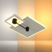 This sleek LED Ceiling Fixture brings a two-tiered square design into your space, combining functionality with a modern aesthetic. The large base square pairs with a half-sized upper square, connected by a striking black beam for a bold, modern look.