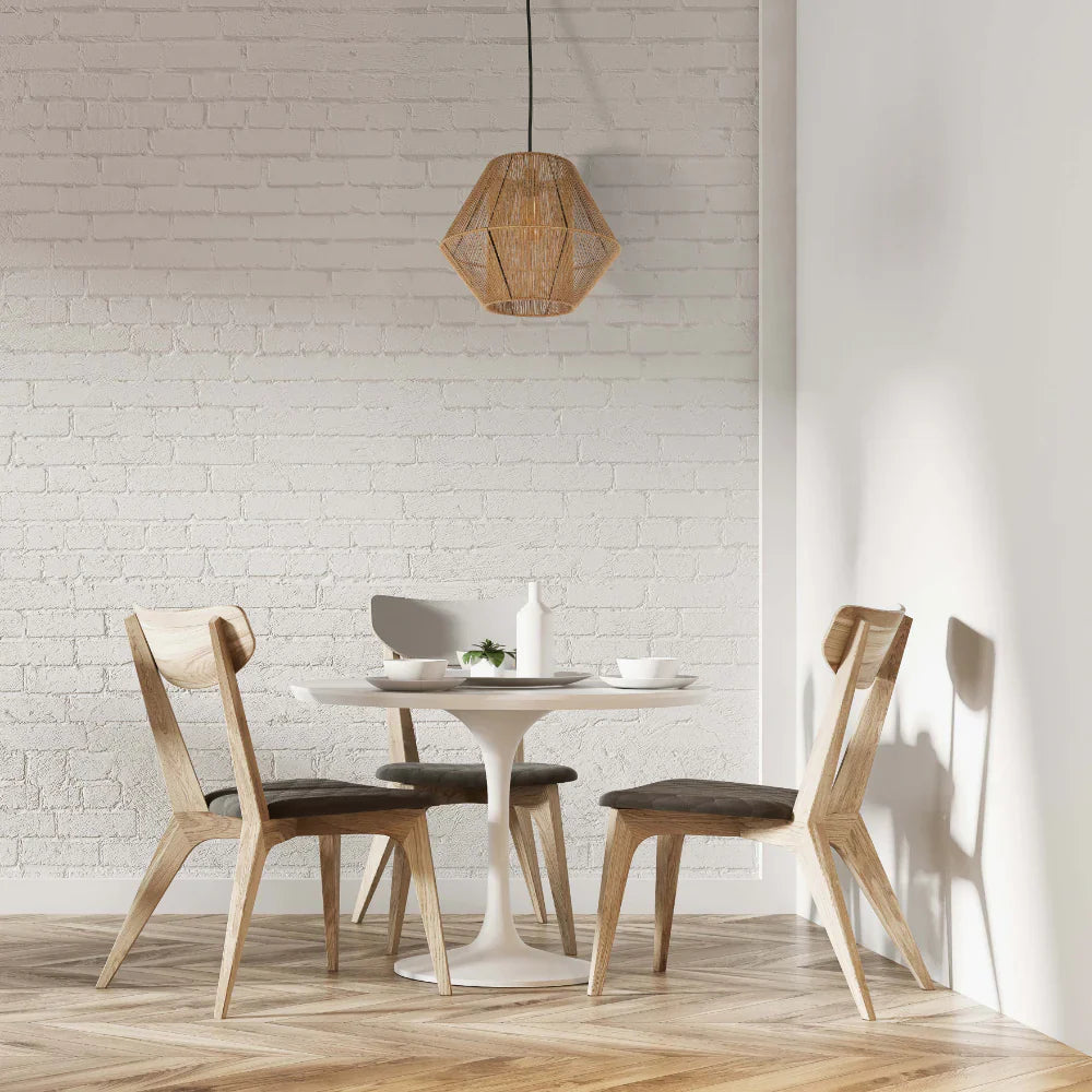 The pendant light's earthy tones and textures make it a versatile fit for various design philosophies, from Bohemian and Coastal to Scandinavian minimalism. It thrives in spaces that celebrate sustainable living and natural materials. Designed to accommodate an ES bulb, this fixture supports both aesthetic flexibility and functional efficiency.