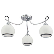 Opal Dome Glass Chrome Metal Semi Flush Ceiling Light - 3 Lamp