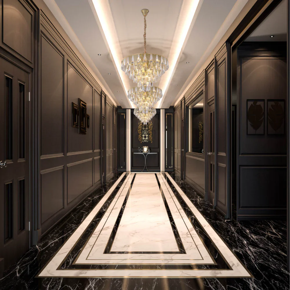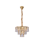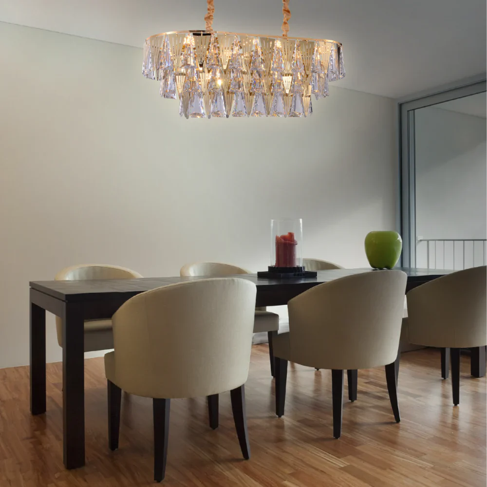 Experience grandeur with the Opulent Gold Chandelier, adorned with triangular crystal elegance. This chandelier, available in multiple sizes, is a testament to craftsmanship and design. It's an ideal choice for homeowners looking to elevate their expansive living areas, grand entryways, or luxurious dining spaces. For professionals like designers and architects, it's a piece that can enhance the ambiance of elite clubs, high-end restaurants, or boutique hotels. The chandelier's gold finish, achieved through a premium electroplating technique, promises both beauty and longevity. As you choose this masterpiece, ensure you also select the perfect bulbs, sold separately, to illuminate its beauty.