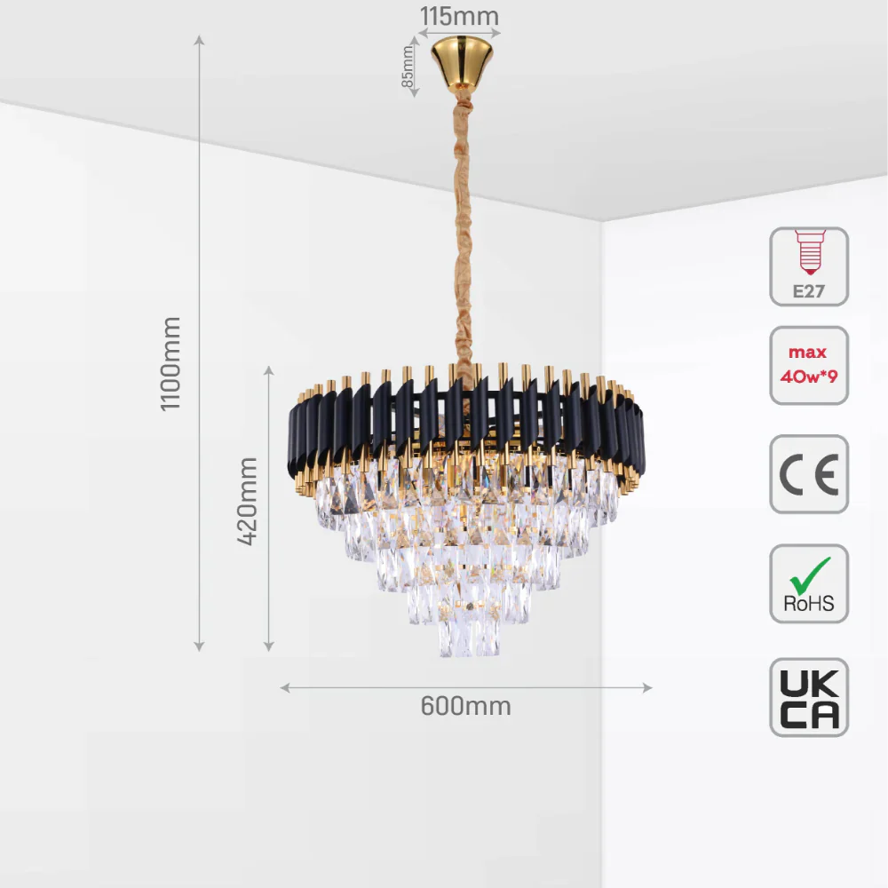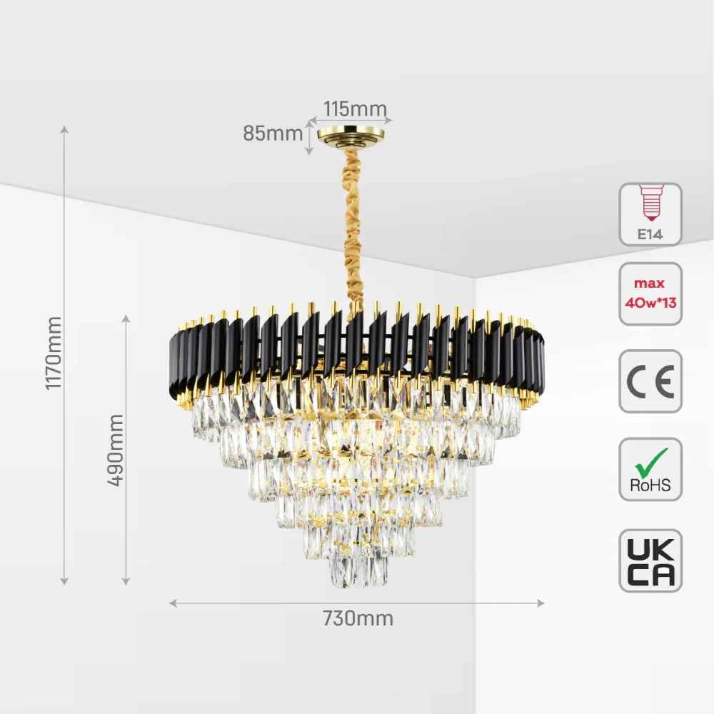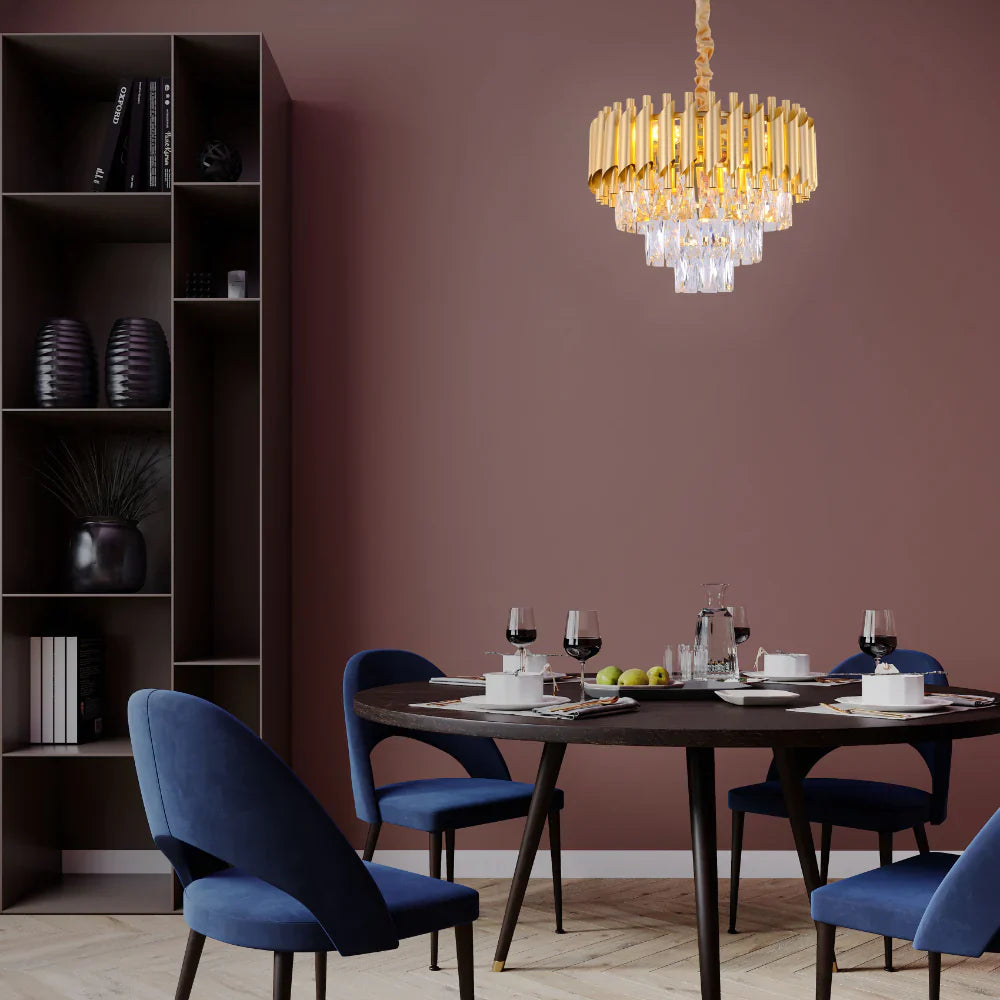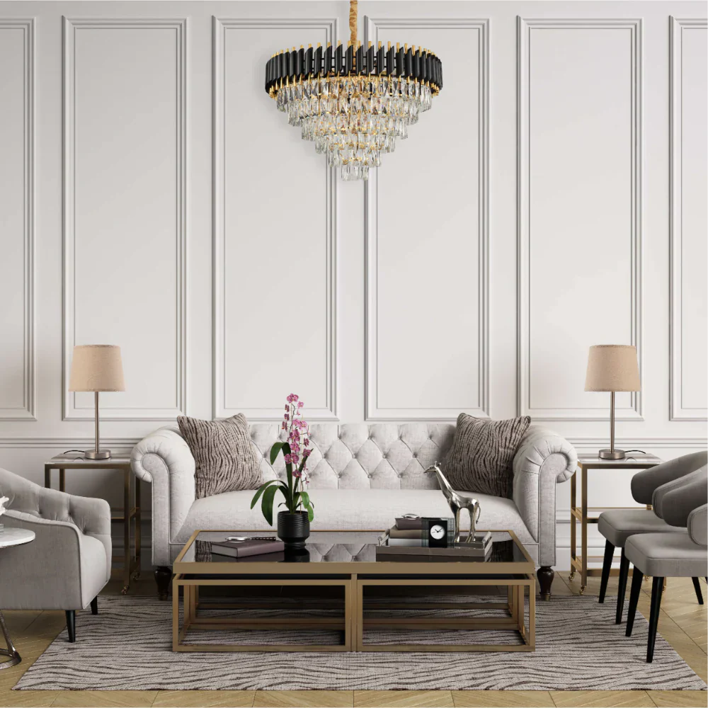 Embrace luxury with the Orbit Glow Design Tiered Crystal Chandelier. Available in multiple sizes and finishes like Black, Gold, and Chrome, this chandelier is a versatile masterpiece. Whether you're a homeowner looking to enhance your living room, dining area, or bedroom, or a designer seeking the perfect piece for a grand ballroom or upscale restaurant, this chandelier promises to deliver. Its tiered design, adorned with shimmering clear crystals, and high-quality electroplated finish, ensure it stands out in any setting. As you invest in this piece of art, remember to choose the right bulbs, as they are sold separately, to complement its radiant beauty.