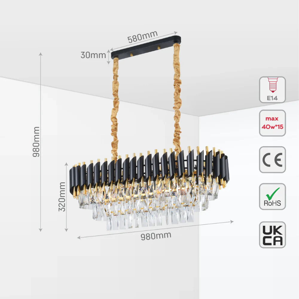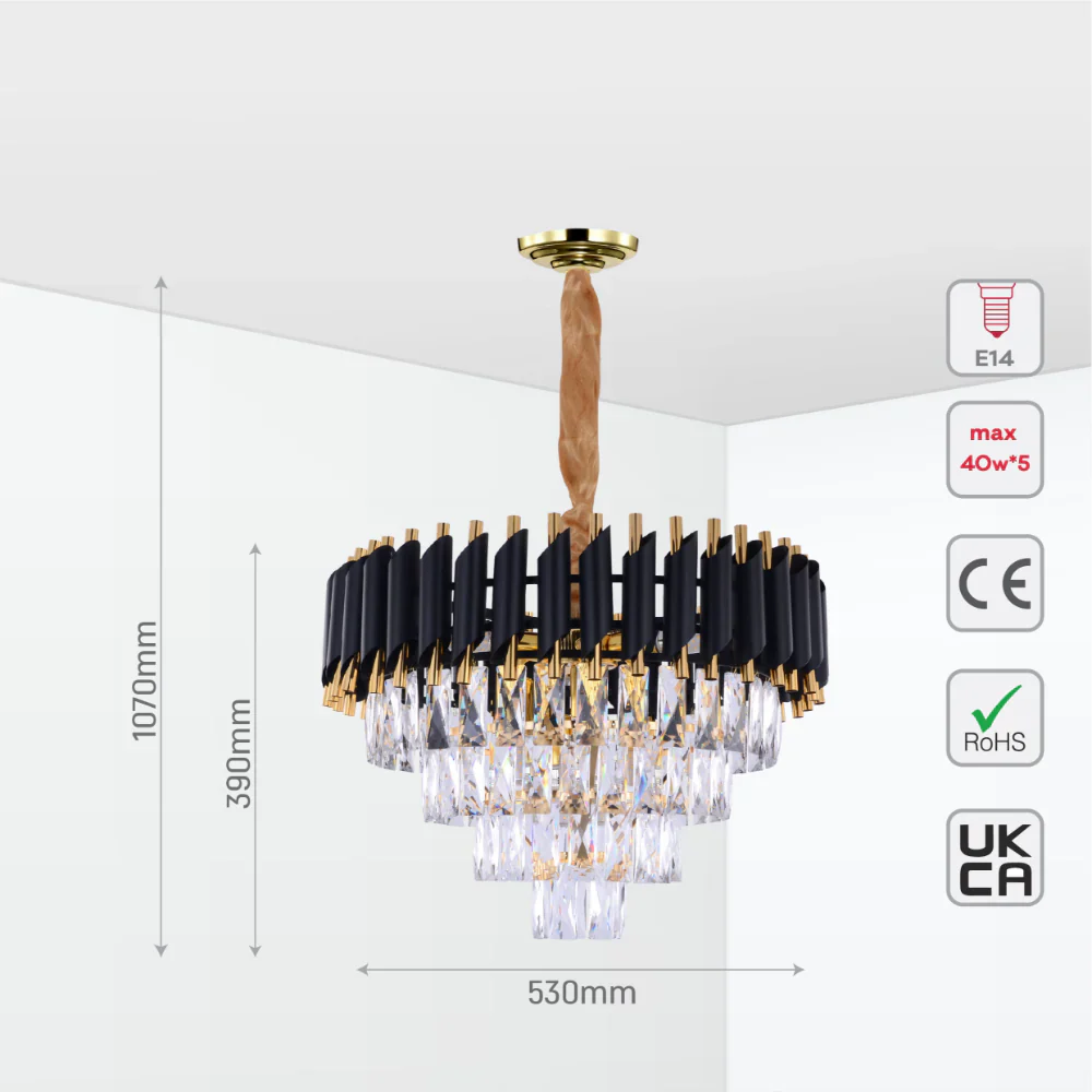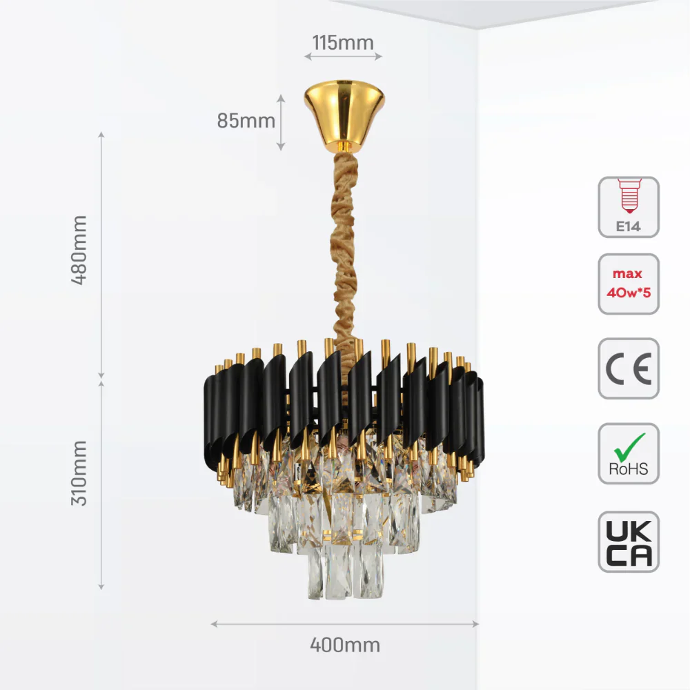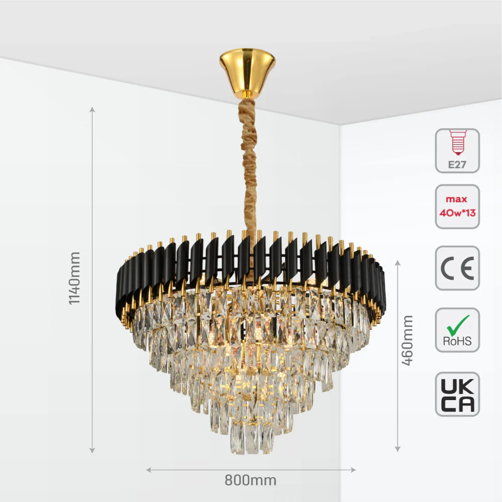 Embrace luxury with the Orbit Glow Design Tiered Crystal Chandelier. Available in multiple sizes and finishes like Black, Gold, and Chrome, this chandelier is a versatile masterpiece. Whether you're a homeowner looking to enhance your living room, dining area, or bedroom, or a designer seeking the perfect piece for a grand ballroom or upscale restaurant, this chandelier promises to deliver. Its tiered design, adorned with shimmering clear crystals, and high-quality electroplated finish, ensure it stands out in any setting. As you invest in this piece of art, remember to choose the right bulbs, as they are sold separately, to complement its radiant beauty.
