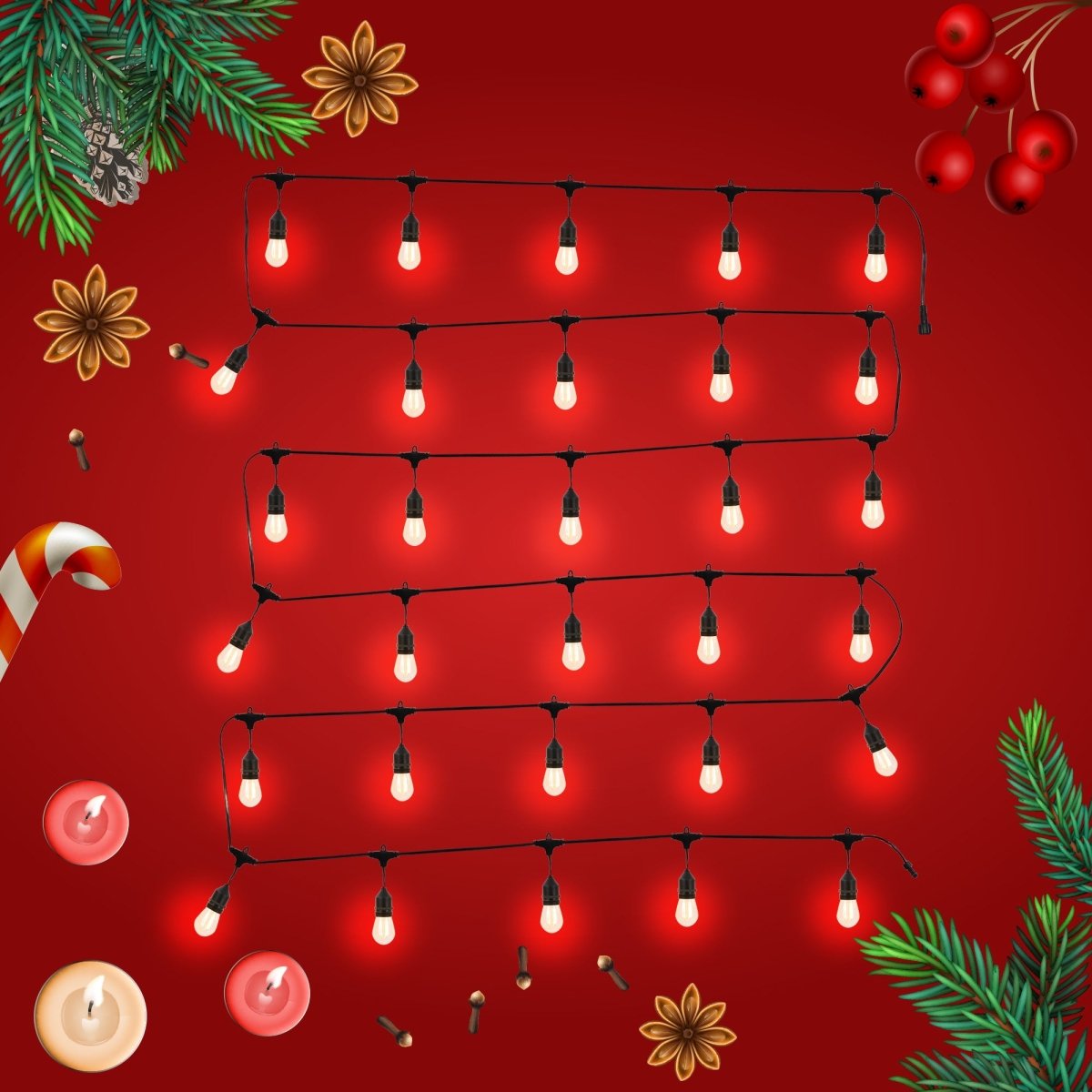 RoHS certified: Our festoon lights are high quality and are free of toxic-chemicals and products. The string lights are not only safe to use but environment-friendly as well. For outdoors, use waterproof socket. Available in 11 metre - 15 Lamps, 20 metre - 30 Lamp variants. Also available are 6 pack of spare bulbs and a 3m extension wire.