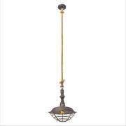 Hemp Rope Silvery Grey Metal Caged Step Flat Dome Pendant Ceiling Light with E27 Fitting |
