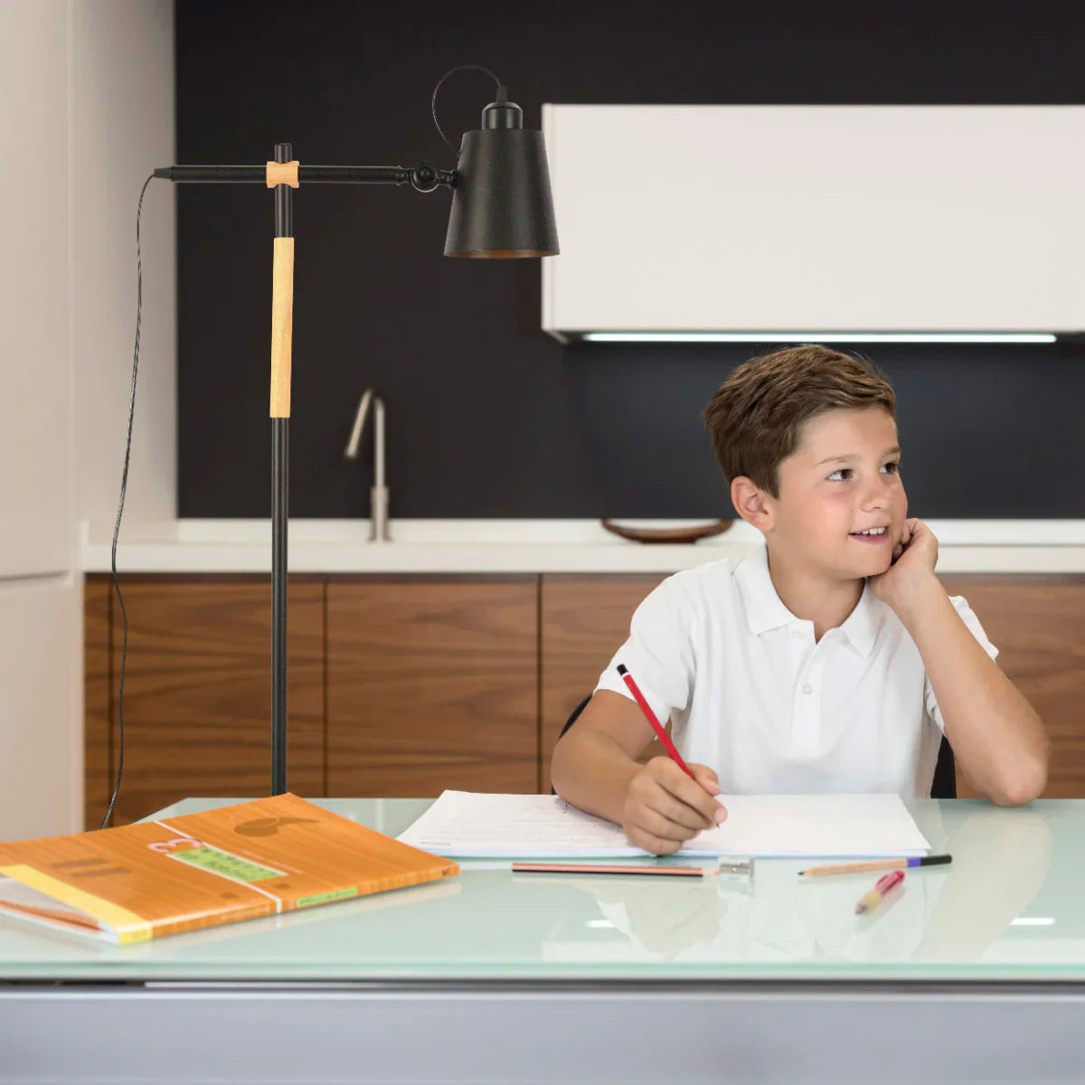 The essence of Nordic design is beautifully encapsulated in our floor lamp, which combines the elegance of black or white finishes with the natural charm of an oak wood accent. This lamp stands approximately 1.5 meters tall, providing a substantial presence in any room without overwhelming the space.