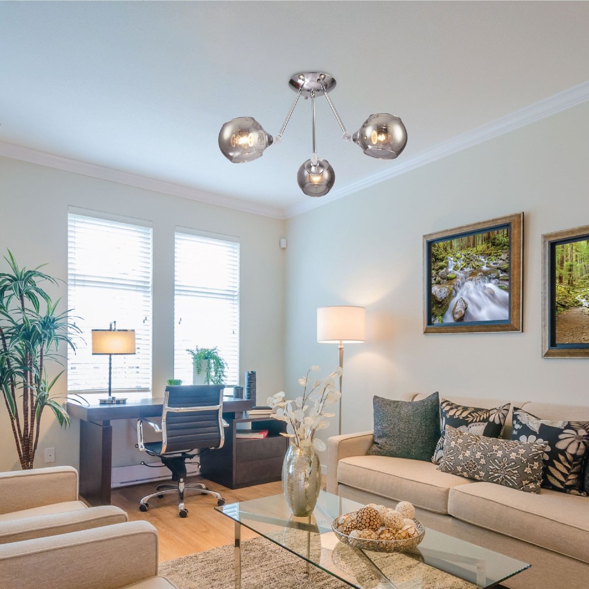 Smoky Cut-out Globe Glass Hinged Chrome Metal Semi Flush Ceiling Light These are two variants of the same product, the...