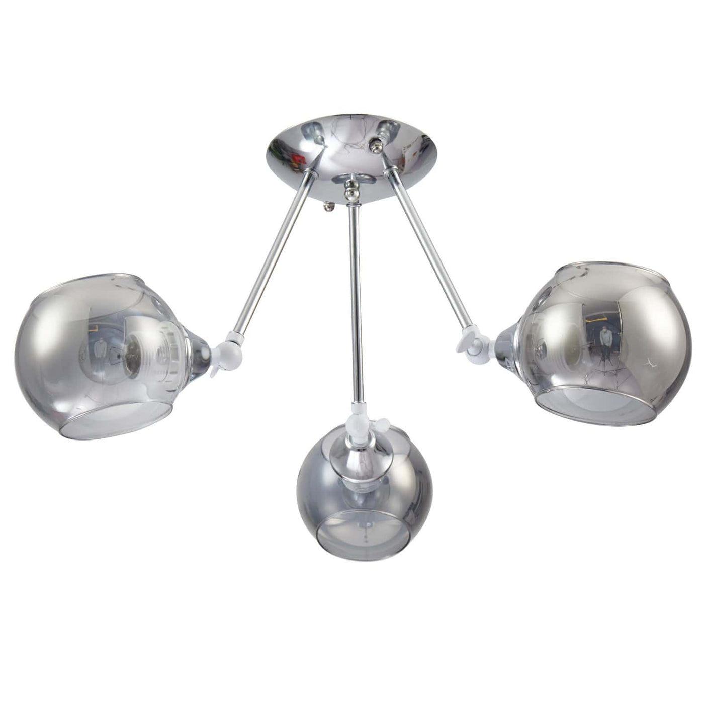Smoky Cut-out Globe Glass Hinged Chrome Metal Semi Flush Ceiling Light - 3 Lamp