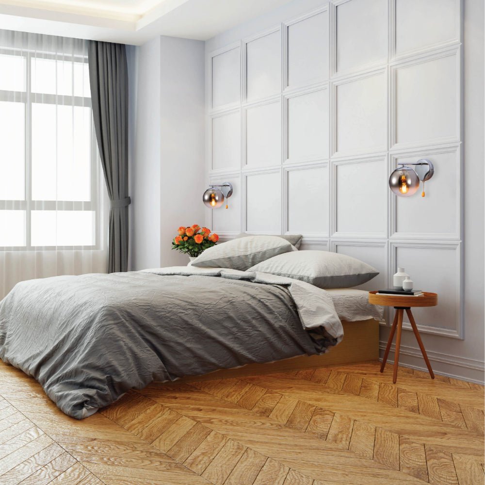 Elegant Globe Wall Light with Pull Down Switch - Smoky Glass Variants