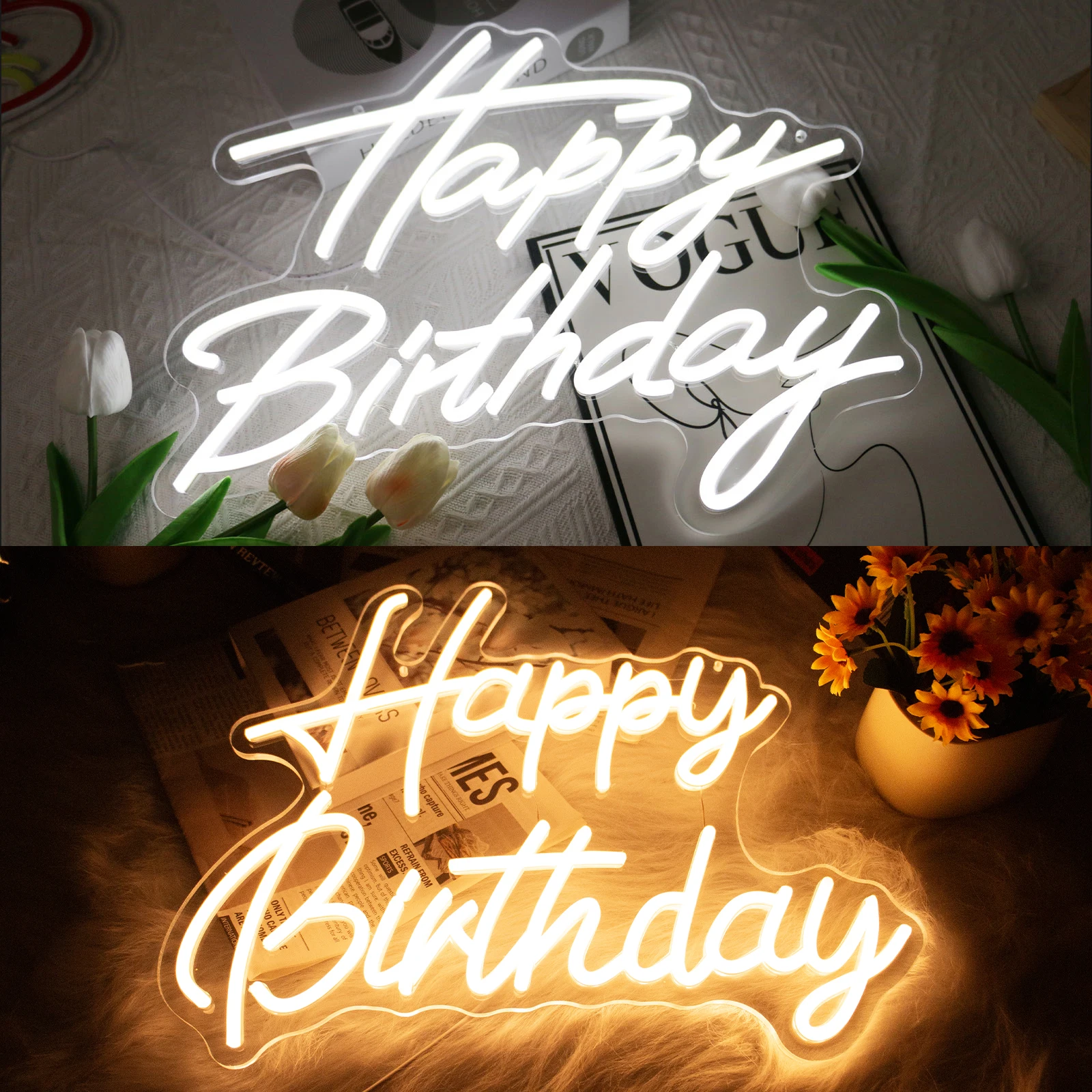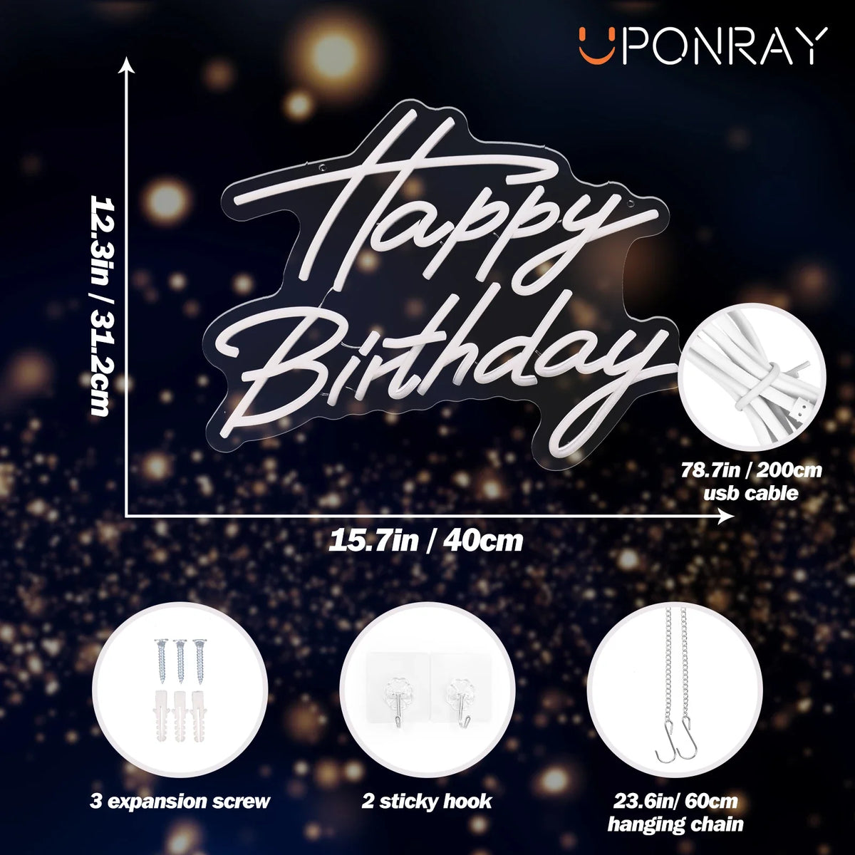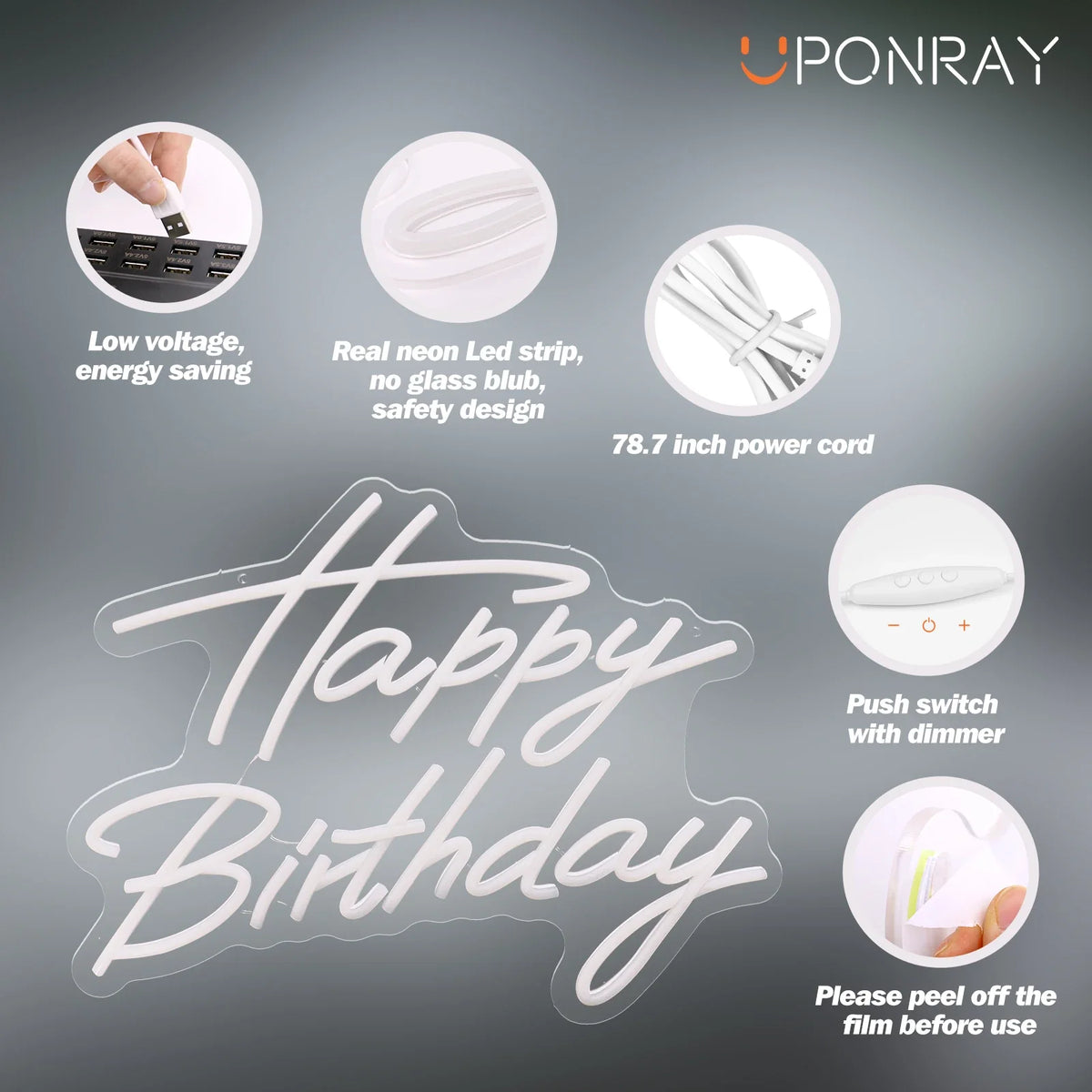 UponRay LED Neon Happy Birthday USB Powered Neon Signs Night Light 3D Wall Art Bedroom Living Room Decor Lamp Signs