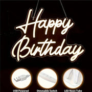 UponRay LED Neon Happy Birthday USB Powered Neon Signs Night Light 3D Wall Art Bedroom Living Room Decor Lamp Signs - changeable