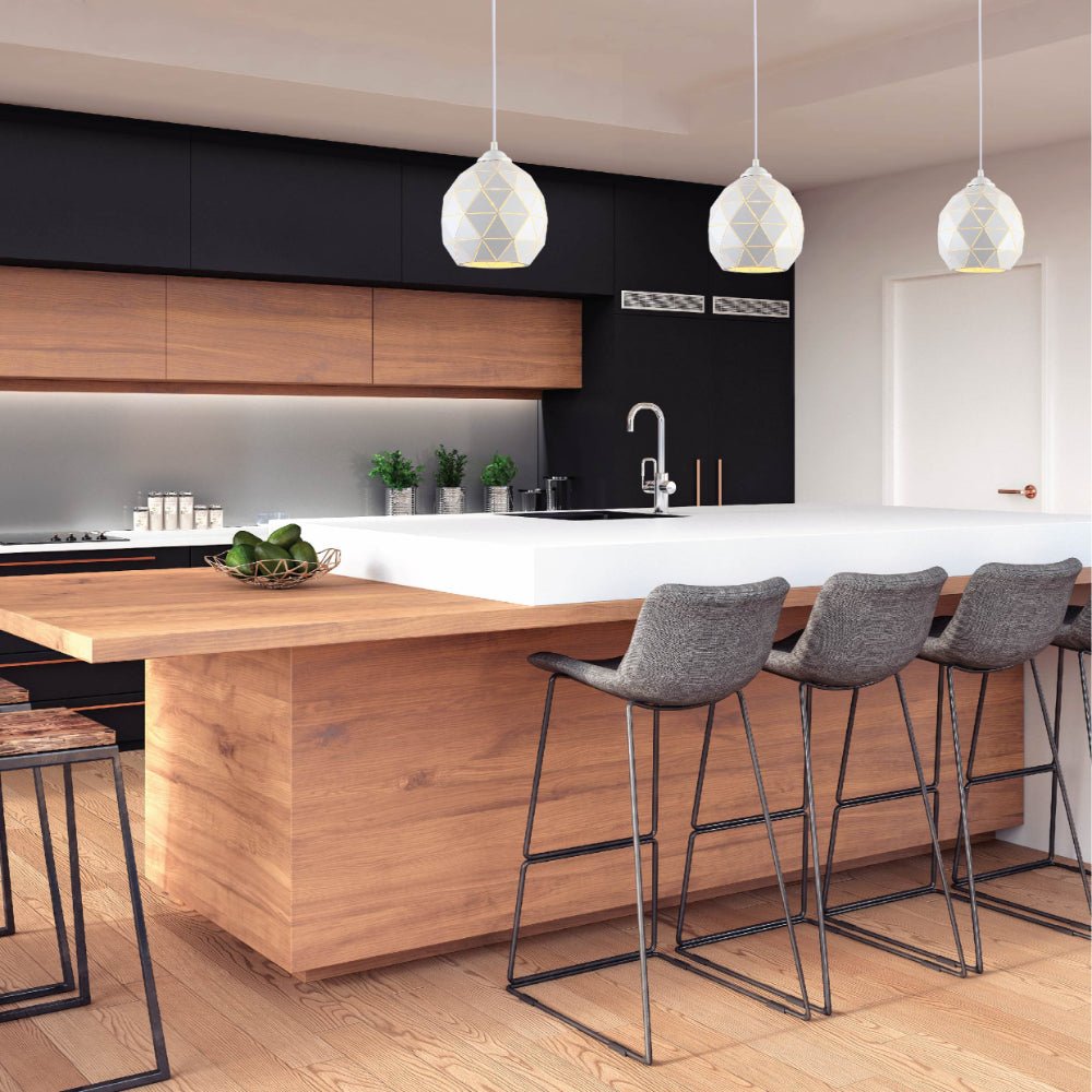 Triangle Pattern Metal Laser Cut Dome Kitchen Island Pendant Ceiling Light E27 White or Black D200 D300 D400 mm |